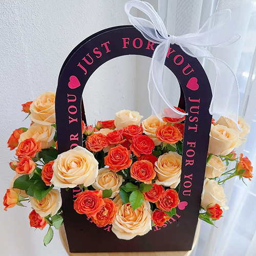 【幸运旺旺】3罐旺仔牛奶,8朵红玫瑰,8支多头橙色小玫瑰,搭配尤加利叶、红豆装饰。